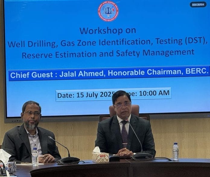 During the workshop, BERC Member Md. Mizanur Rahman gave a technical overview of seismic surveys, well drilling, DST testing, reserve estimation, and associated risks. A former top executive in state-owned energy companies, Rahman also emphasized the high potential for new gas discoveries in Bangladesh.