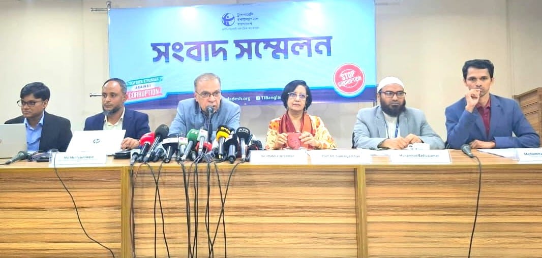 The press conference was attended by TIB Executive Director Dr. Iftekharuzzaman, Advisor to Executive Management Prof. Dr. Sumaiya Khair, Research and Policy Division Director Muhammad Badiuzzaman, and Outreach & Communication Director Mohammad Tauhidul Islam. The report was presented by Senior Research Fellow Md. Mahfuzul Haque and Research Associate Md. Shahidul Islam.