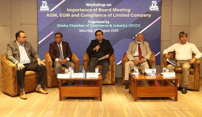 The workshop, titled “Importance of Board Meeting, AGM, EGM and Compliance of Limited Companies”, was held at the DCCI auditorium on August 2. AKM Nurunnabi Kabir, Registrar (Additional Secretary) of the Office of the Registrar of Joint Stock Companies and Firms (RJSC), attended the event as the chief guest.