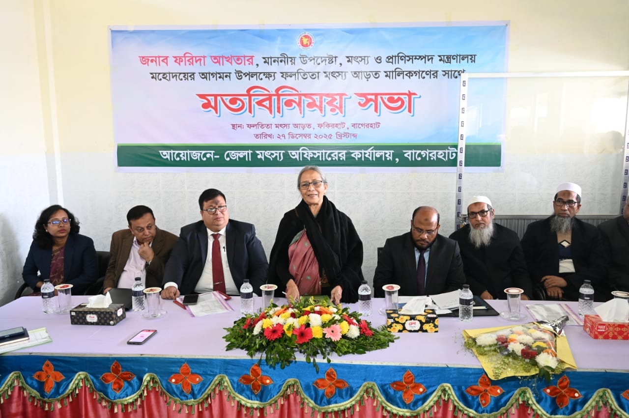 The meeting was attended by Director General of the Department of Fisheries Dr. Md Abdur Rouf, Joint Secretary of the Ministry of Fisheries and Livestock Dr. Abu Naim Muhammad Abdus Sabur, Bagerhat Deputy Commissioner Golam Md Baten, District Fisheries Officer Raj Kumar Biswas, and other officials from various levels of the administration.