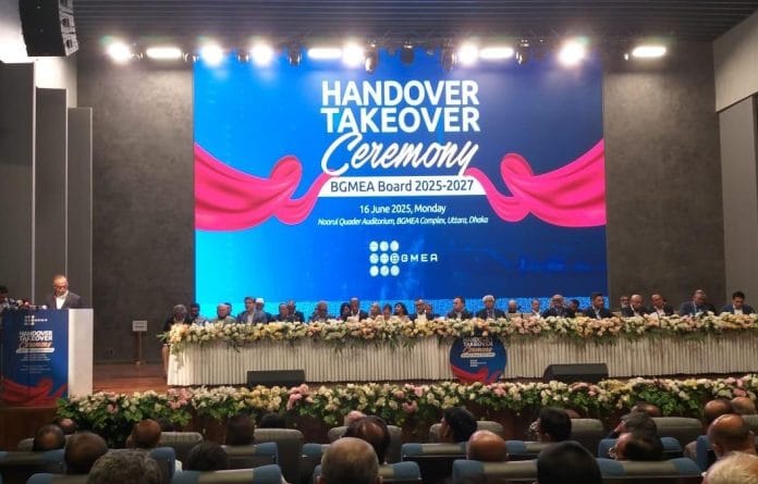 The handover ceremony was attended by all 35 members of the newly elected BGMEA board. Representatives from the Sammilito Parishad and Forum panels welcomed the new president with floral greetings. The Bangladesh Knitwear Manufacturers and Exporters Association (BKMEA) also extended congratulations to the entire new committee.