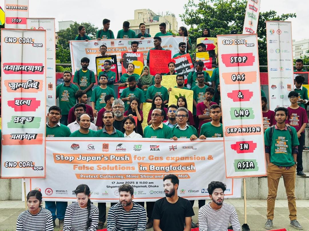 A protest rally was held today at Shyamoli Park Ground in Dhaka’s Mohammadpur area, calling on the Japanese government and private investors to halt funding in coal and LNG projects across Asia, including Bangladesh.