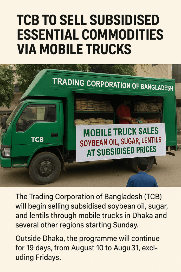 The Trading Corporation of Bangladesh (TCB) is set to begin selling subsidised essential commodities via mobile trucks in Dhaka and several other regions starting Sunday.